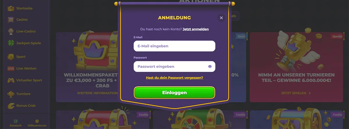 Wichtiger Hinweis: Deaktivieren Sie Ad-Blocker temporär, falls Loginprobleme auftreten. Viele Werbeblocker blockieren versehentlich Casino-Funktionen.